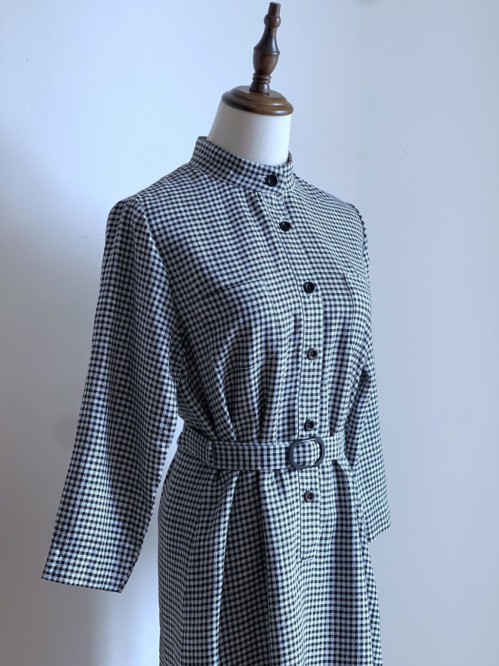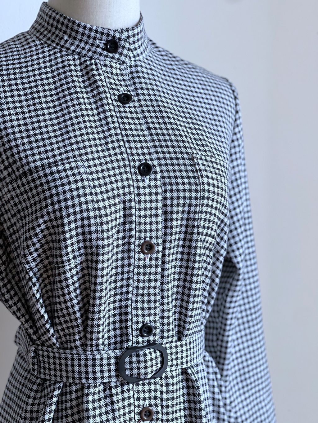 Effortlessly classic with a hint of utility—this fully lined gingham dress features a structured mandarin collar, two front pockets, and handy side pockets for everyday ease. Comes with a matching belt to cinch the waist and flatter the silhouette. A timeless staple and heavy fabric material.