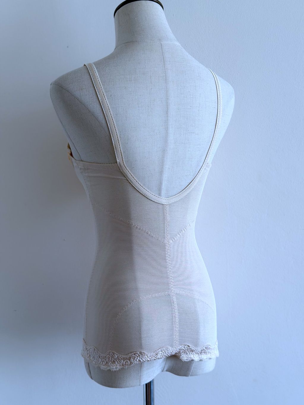 Crafted from sheer mesh with intricate floral detailing, the yellow lace appliqué from bust to center evokes a soft, romantic garden aesthetic. Lightly structured with poly-nylon construction, it balances support and ethereal femininity.