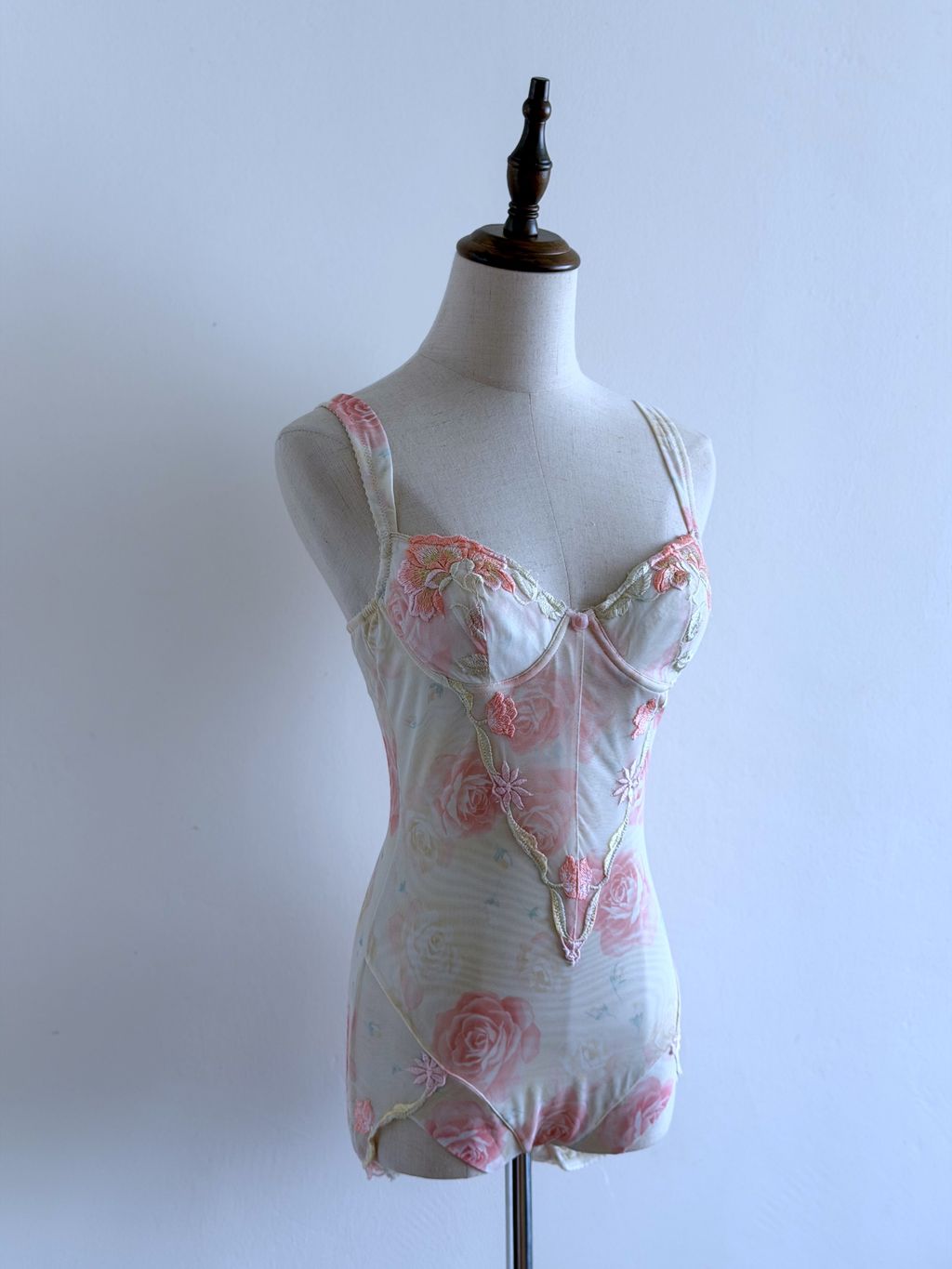 Pastel Rosette Floral Lace Bodysuit (32A / 80A)