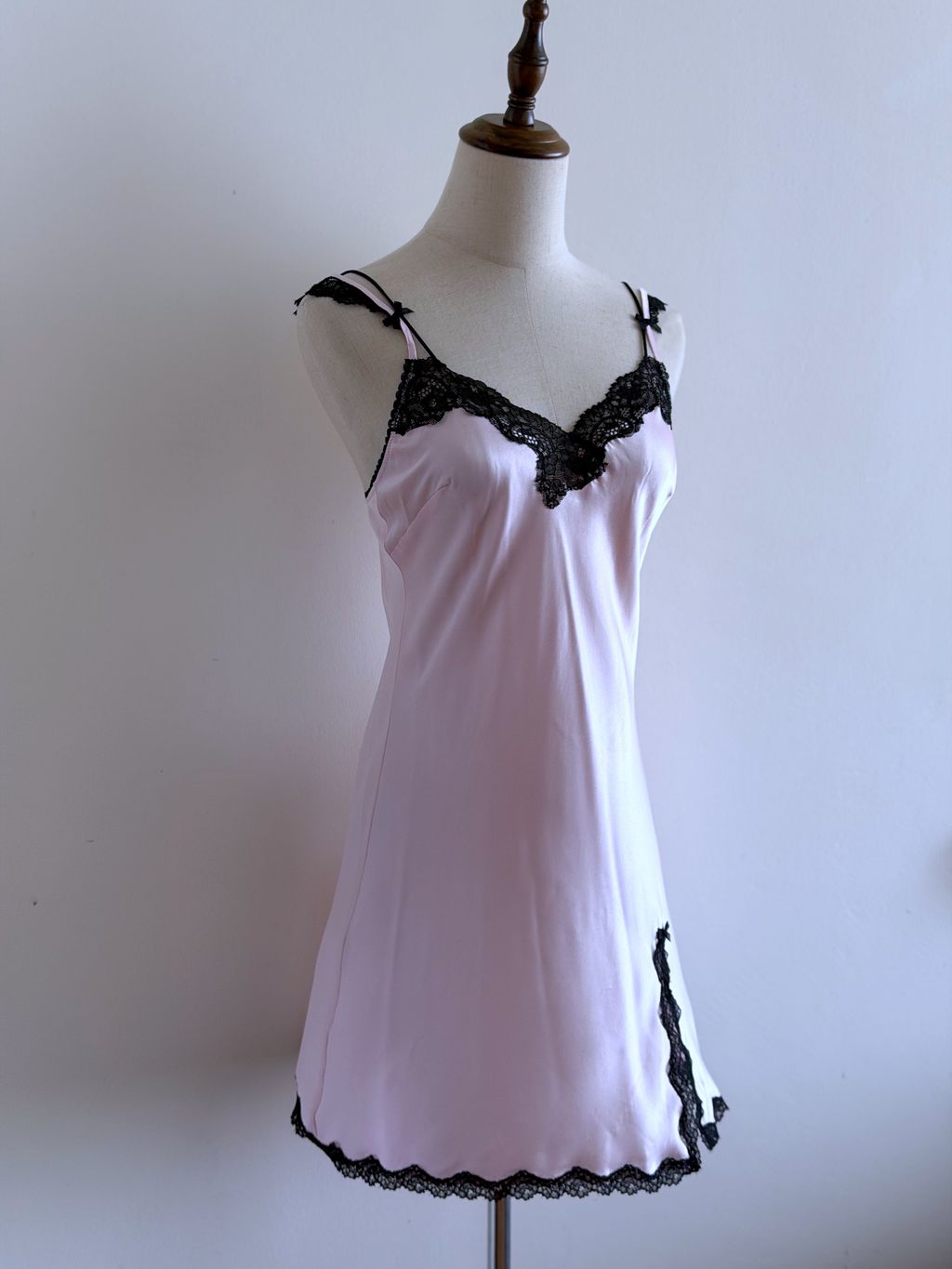 Soft, seductive, and effortlessly feminine, this light pink satin slip dress by Victoria’s Secret glides over the body with a loose, silky flow, catching the light with a luxurious sheen.