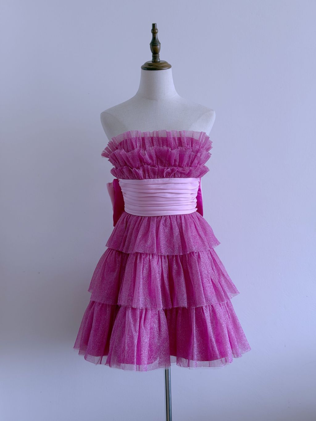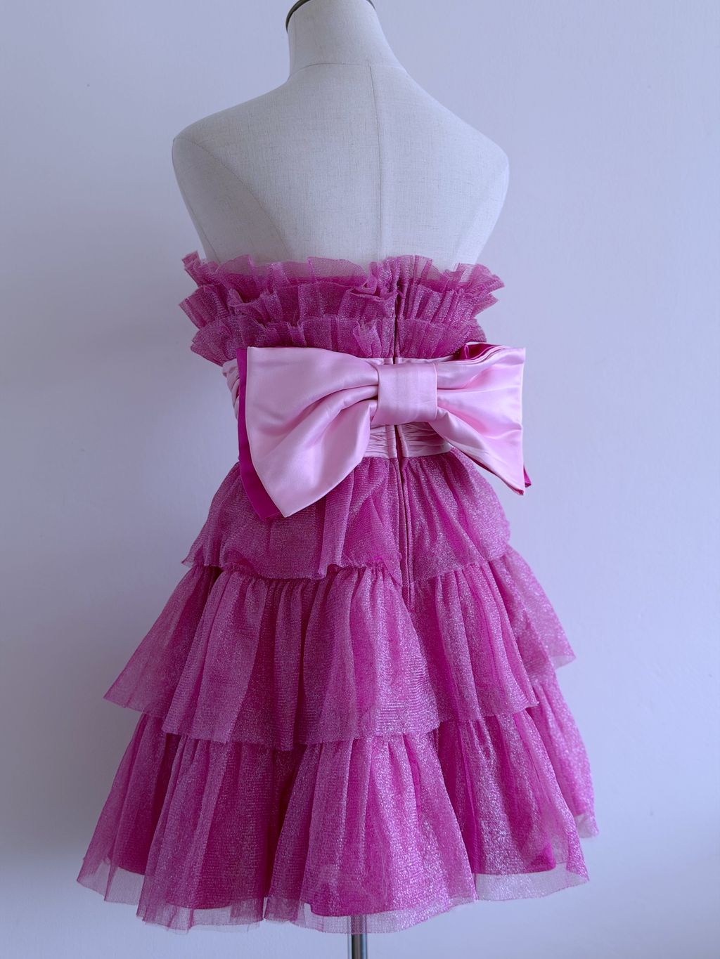 Rendered in shimmering metallic pink, this dress radiates youthful energy and retro glamour—perfect for standing out at any festive occasion with a distinctly Betsey Johnson flair.