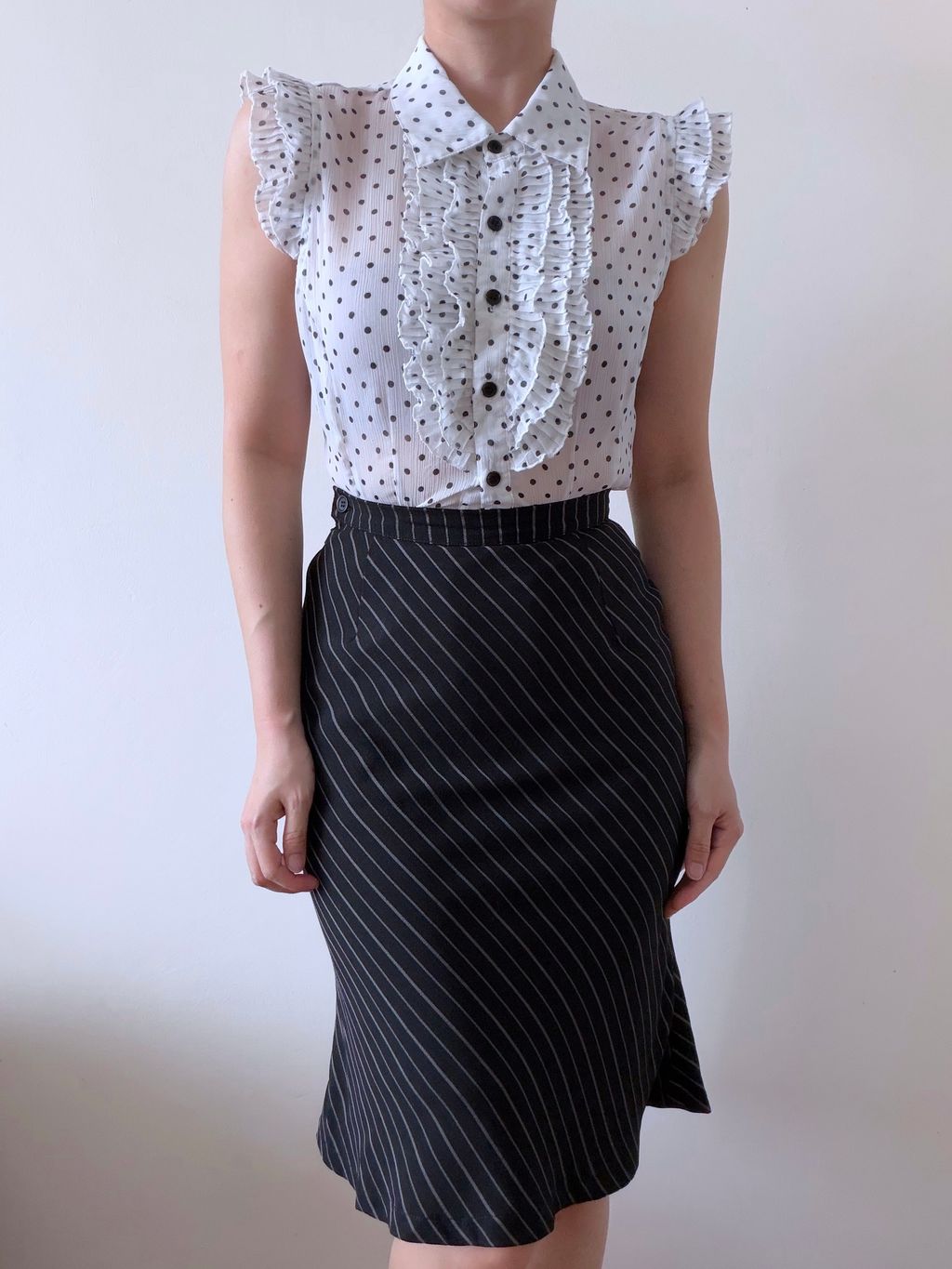 Polka Dot Jabot Blouse (M-L)
