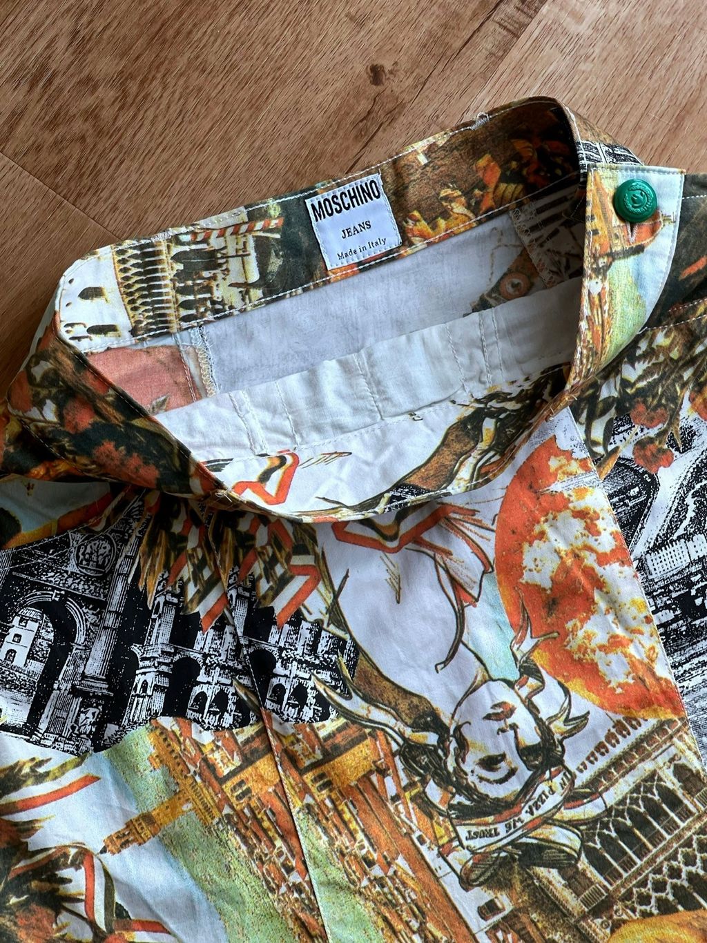 Make a bold statement with this stunning 90s vintage Moschino skirt, featuring an iconic Italian postcard print that captures playful, artistic charm featuring a side zipper. A true collector’s piece, it perfectly blends vintage flair with Moschino’s signature irreverent style.