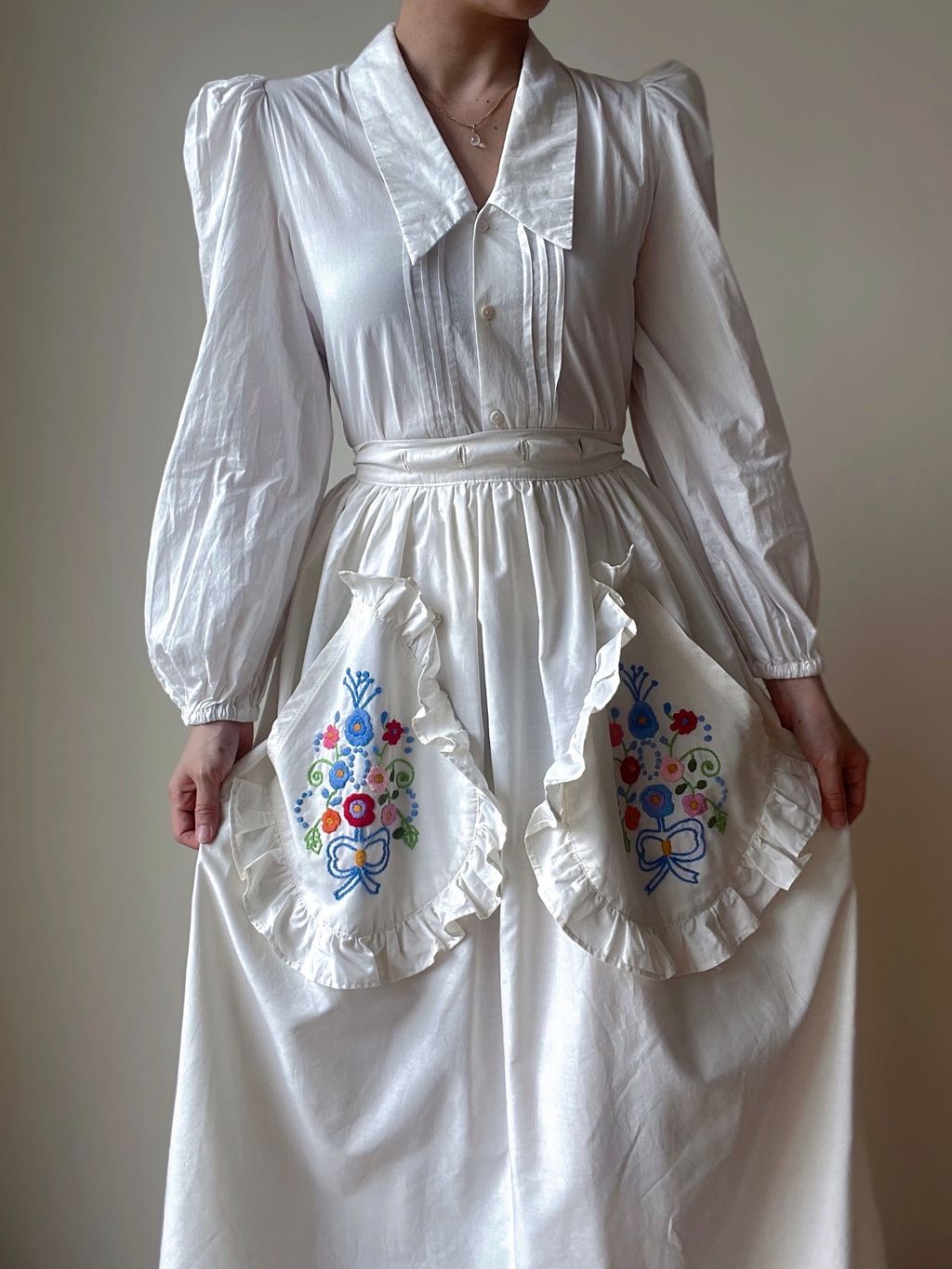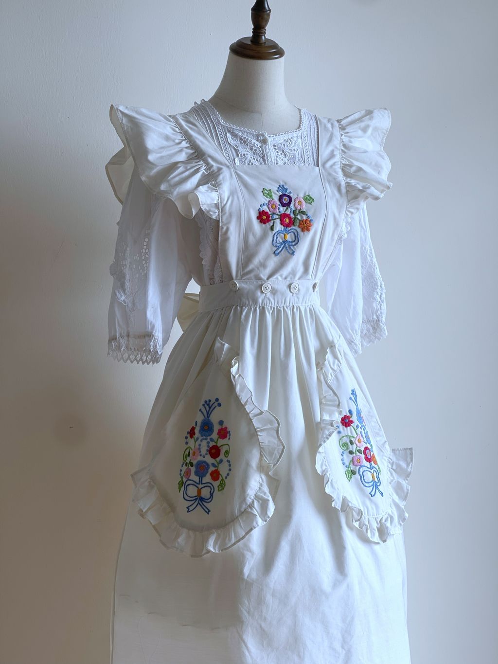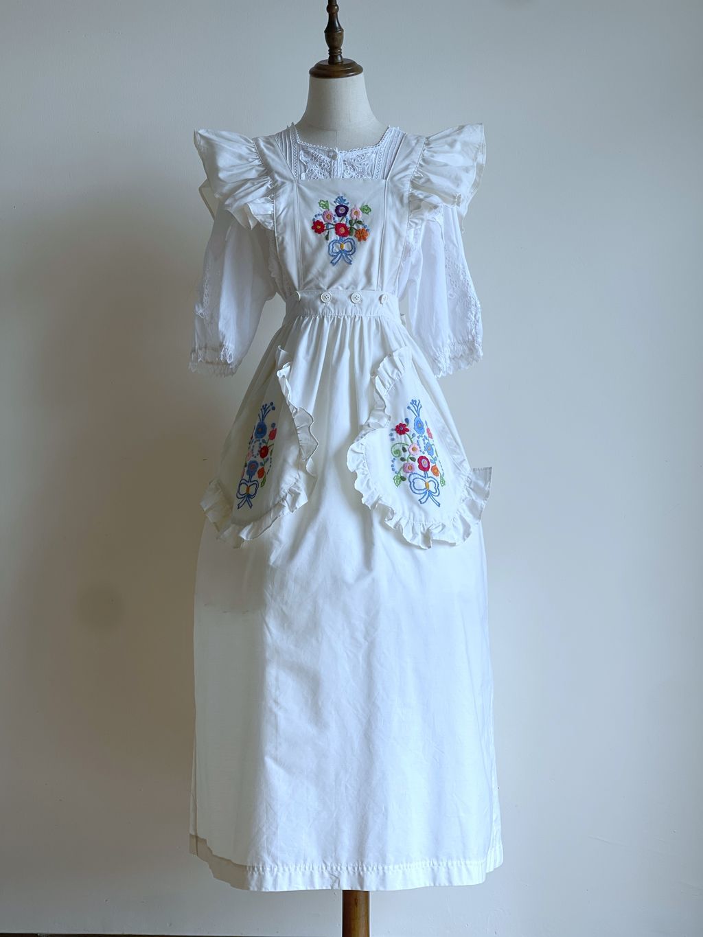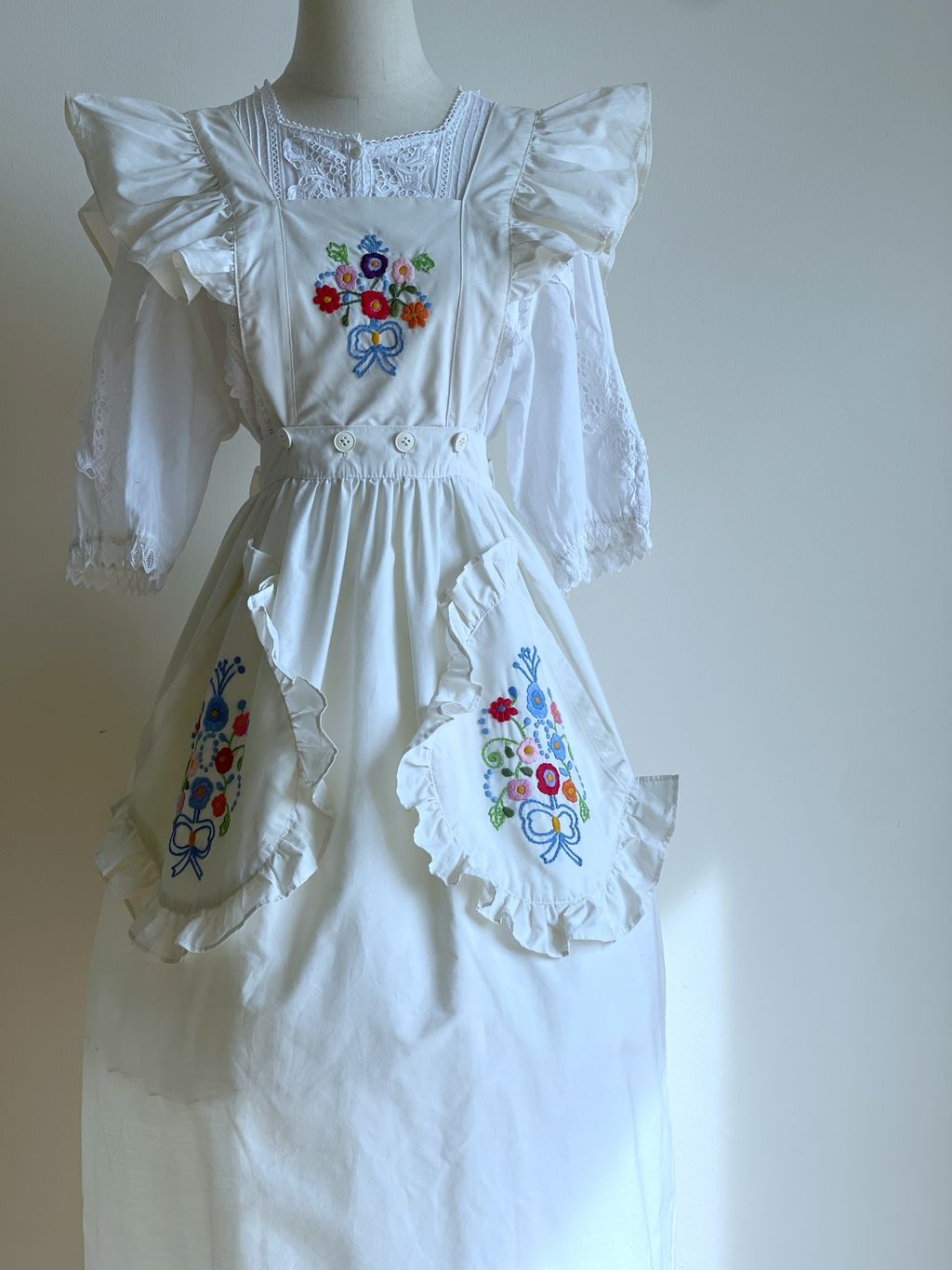Vintage Embroidered Cotton Detachable Jumper Dress