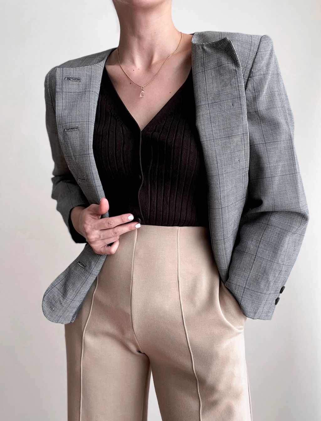 Truly incredible Gle Plaid vintage blazer piece by Yorkland. Half lined, features 2 functional outer pockets. An essential formal / lounge piece.