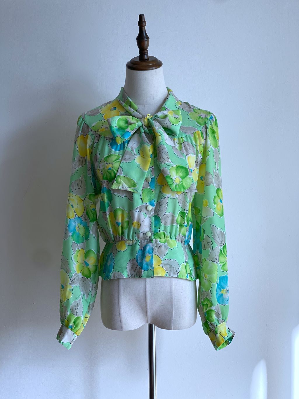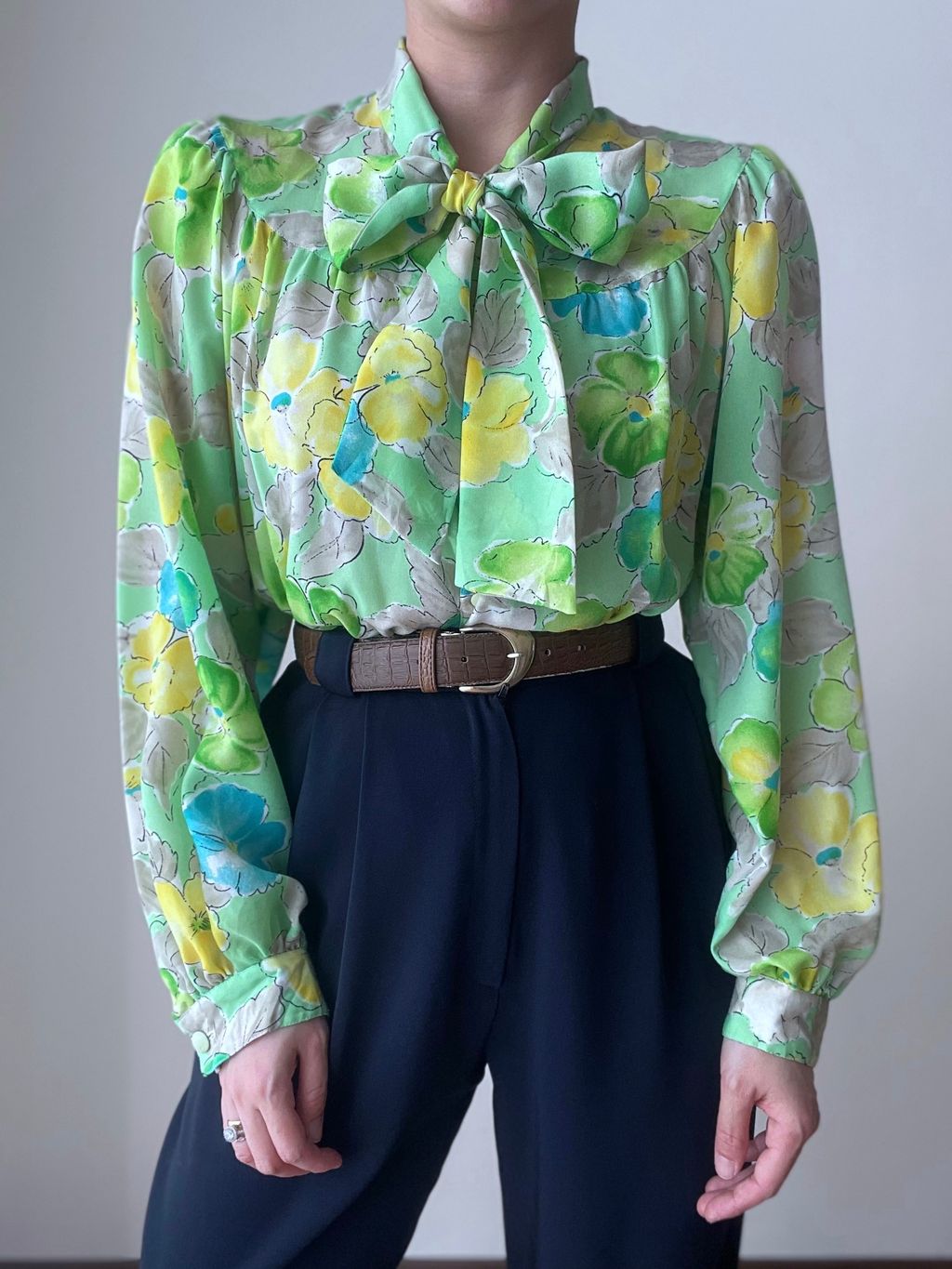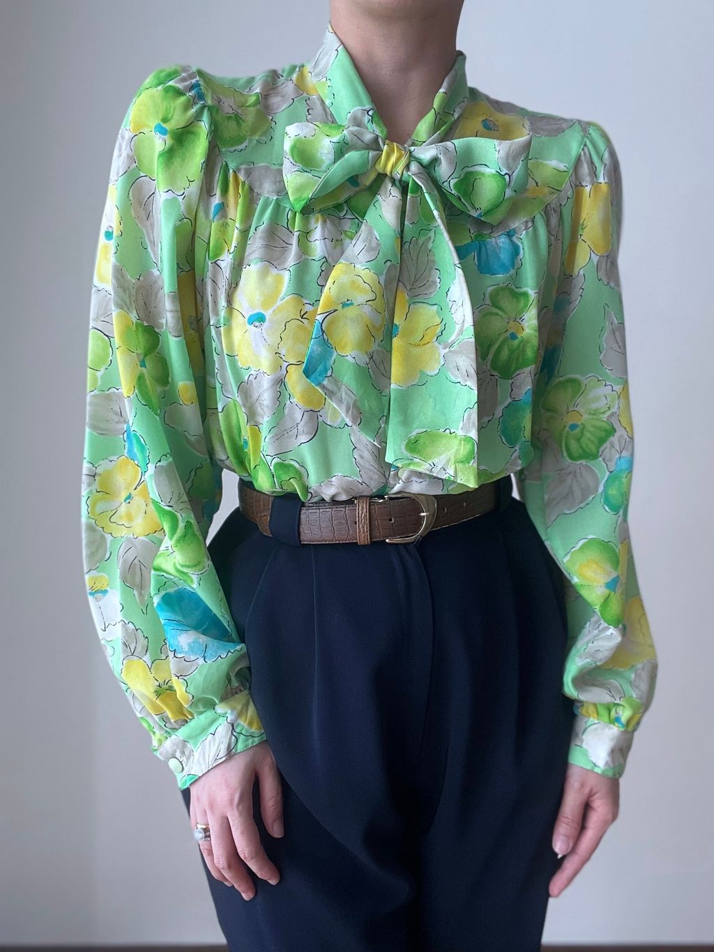 Absolutely stunning vintage watercolour floral blouse with pussybow tie.
