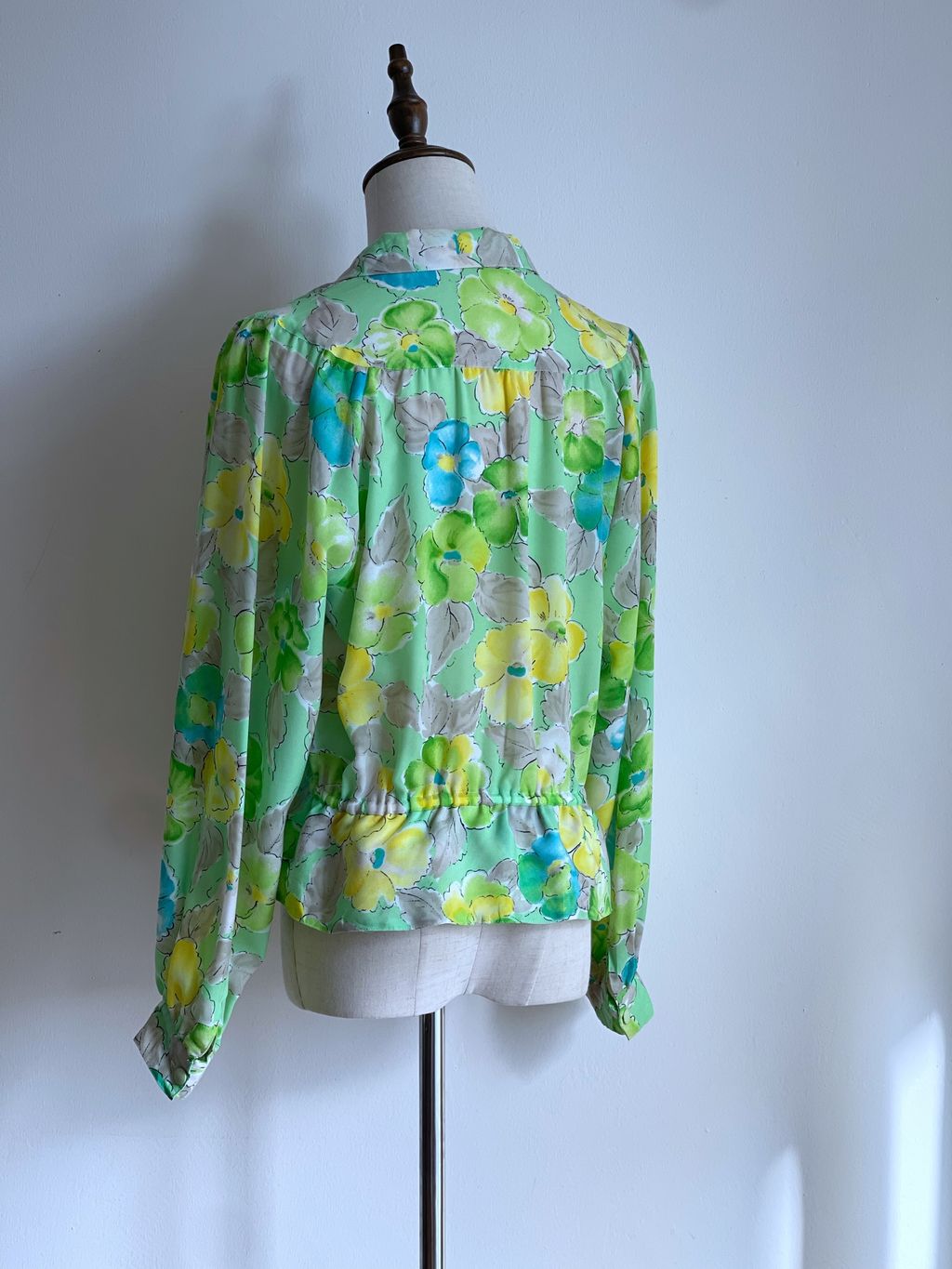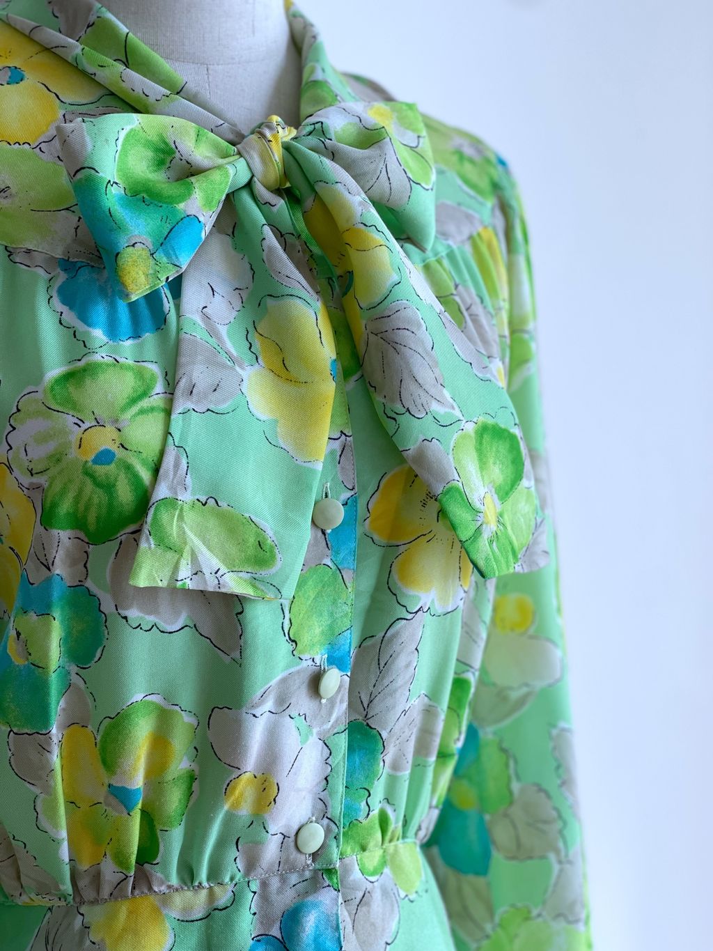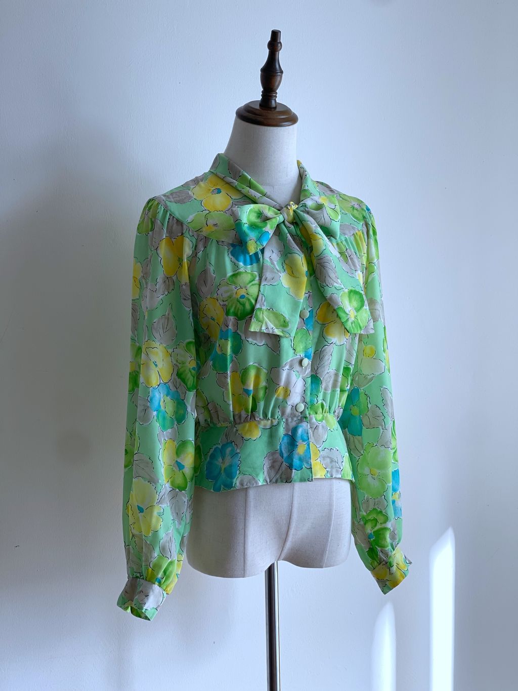 Absolutely stunning vintage watercolour floral blouse with pussybow tie.